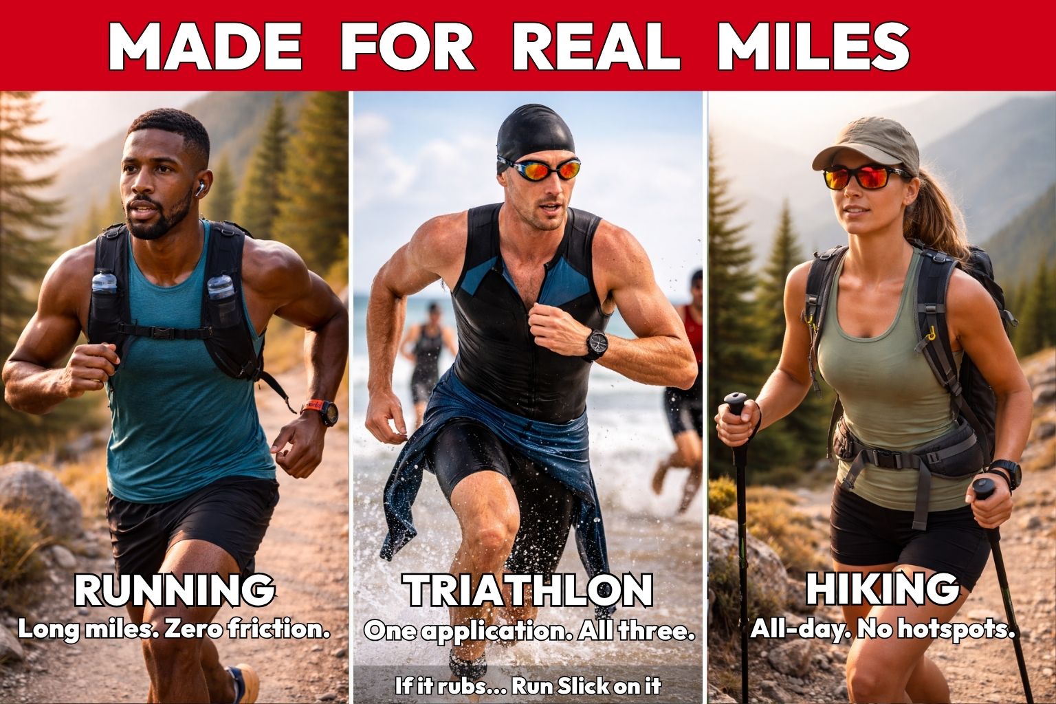 Run Slick™ is a lightweight, fabric-safe roll-on built for runners, hikers, and endurance athletes who train in heat, sweat, and long miles.